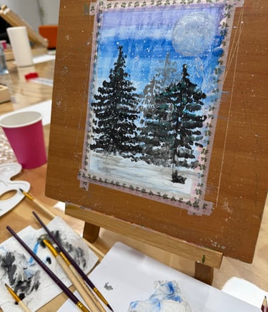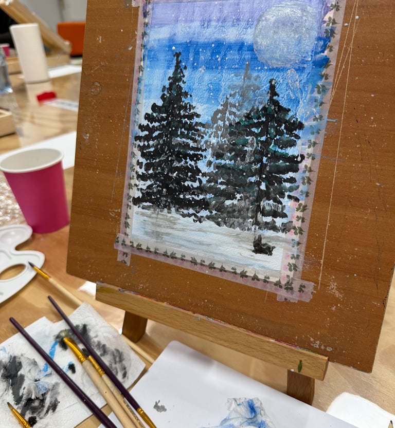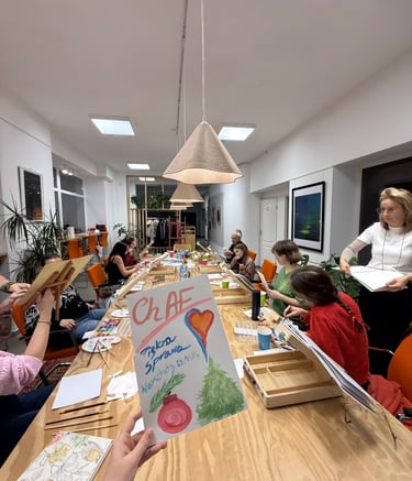 Warsztaty o tematyce "Kartka Świąteczna" prowadzone przez Joannę Lisiecką